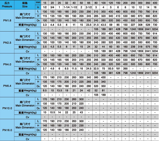 結構長度: GB/T 12221 ASME B16.10