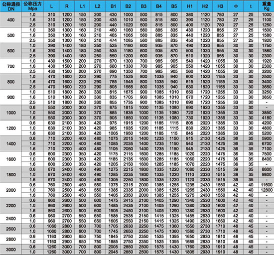 | 口徑(mm) | DN≤1000 | 1000-2000 | 2100-3000 | ≥3000 |