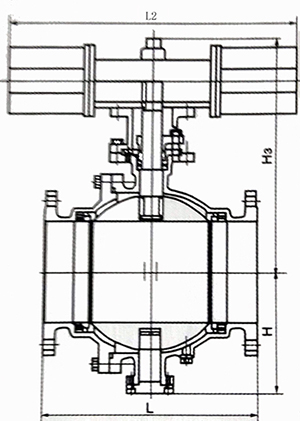 PN2.5MPa下的氣動(dòng)固定球閥外形尺寸
